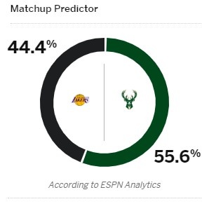 KuaSports > Basketball > All back to back! ESPN predicts tomorrow s winning rate: Lakers 44.4%, Bucks 55.6%, more optimistic