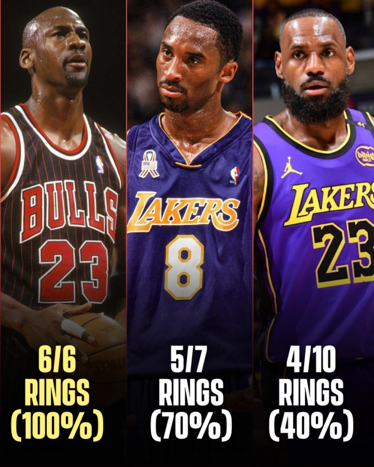 KuaSports > Basketball > Number of times Joe Janko has won the Finals: Jordan s 6-win win rate is 100%, Kobe s 5-win win rate is 70%, and James 40% win rate