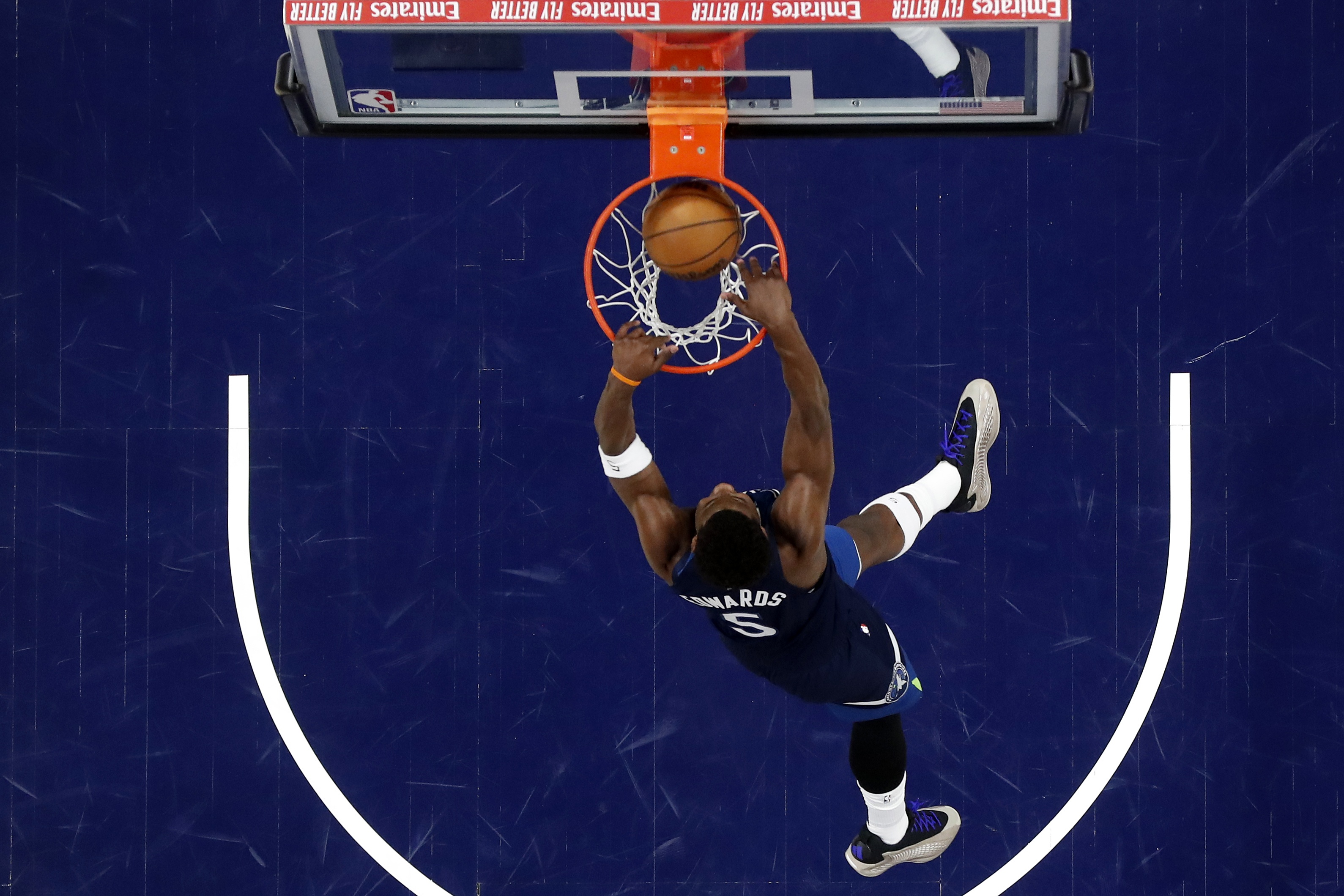 Undefended? Edwards accelerated his crotch and broke through, flying into the paint and dunking, directly stopping the Jazz.