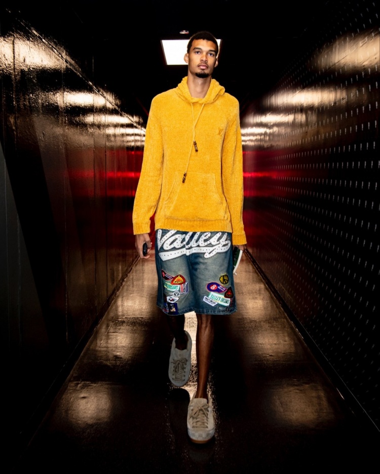 KuaSports > Basketball > Wenbanyama entrance outfit: long top and short bottom, walking LV billboard