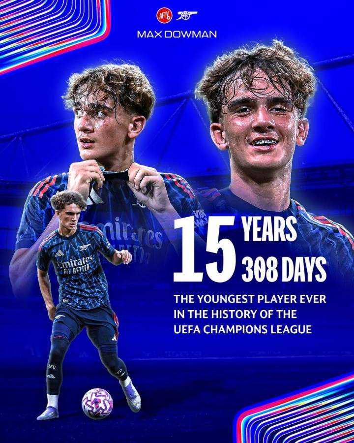 In this round of the Champions League, Arsenal teenager Dauman, who is 15 years and 308 days old, became the youngest player in the history of the Champions League! In the 72nd minute of Slavia Prague vs Arsenal, Dauman, Ben White and Skelly came on the bench, while Cappier, Trossard and Timber came off. At 15 years and 308 days old, Dauman became the youngest player in the history of the Champions League