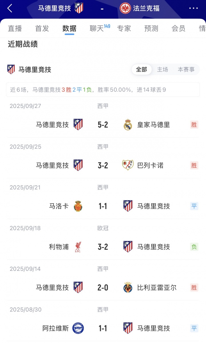 In the first round of the Champions League, Atletico Madrid lost to Liverpool 2-3 away; Frankfurt beat Galatasaray 5-1 at home!